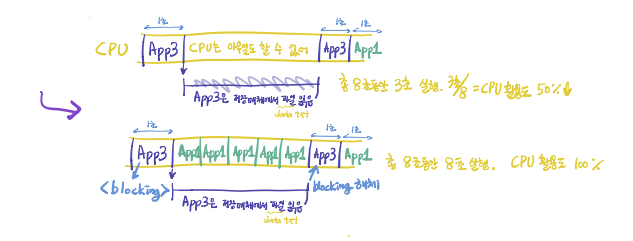 • 최대한 CPU를 많이 활용하여 여러 응용프로그램 실행을 가능하게 함