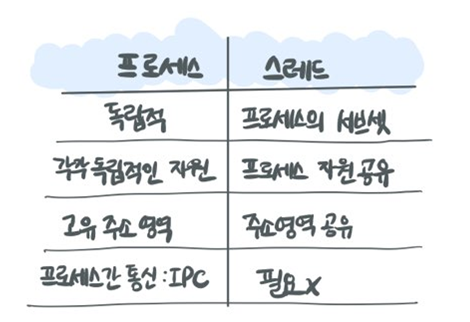 ◦ 프로세스 안에 있으므로 프로세스의 데이터를 모두 접근 가능