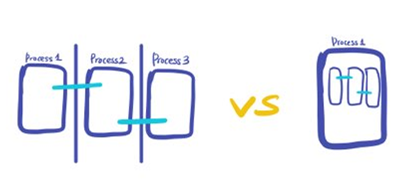 1. 스레드 중 한 스레드만 문제가 있어도 전체 프로세스가 영향을 받음